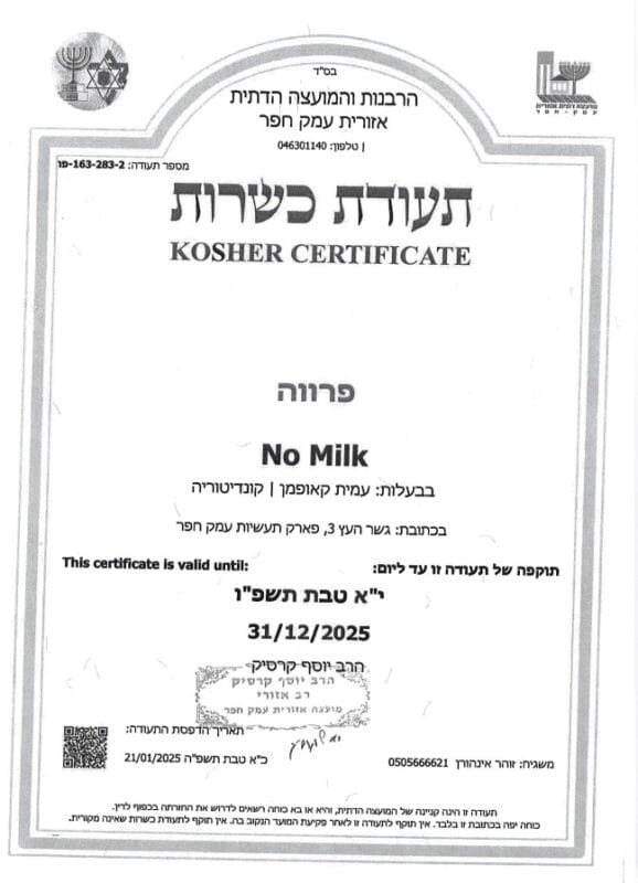 תעודת כשרות חלבי: