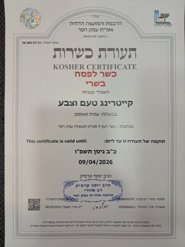 למשלוחים מהיום להיום לא ניתן לצרף מנות ממחלקות אחרות.