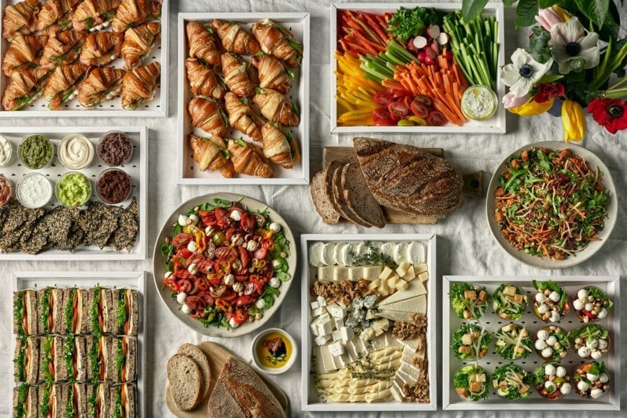 מגשי אירוח מלאים בירקות טריים וכל טוב השדה והמטבח שלנו.