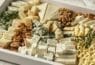 מגש עונתי המכיל מגוון גבינות טריות, מיושנות, עם עובש לבן וגם רוקפורטי עם אגוזים ופרי עונתי שנצמדים אליהן היטב.