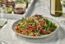 סלט עשיר ומעורר עם קינואה אדומה ולבנה, קוביות בטטה מטוגנת, פטרוזיליה קצוצה, סלרי, קוביות סלק, בצל ירוק, בייבי רוגלה ועדשים מונבטות.