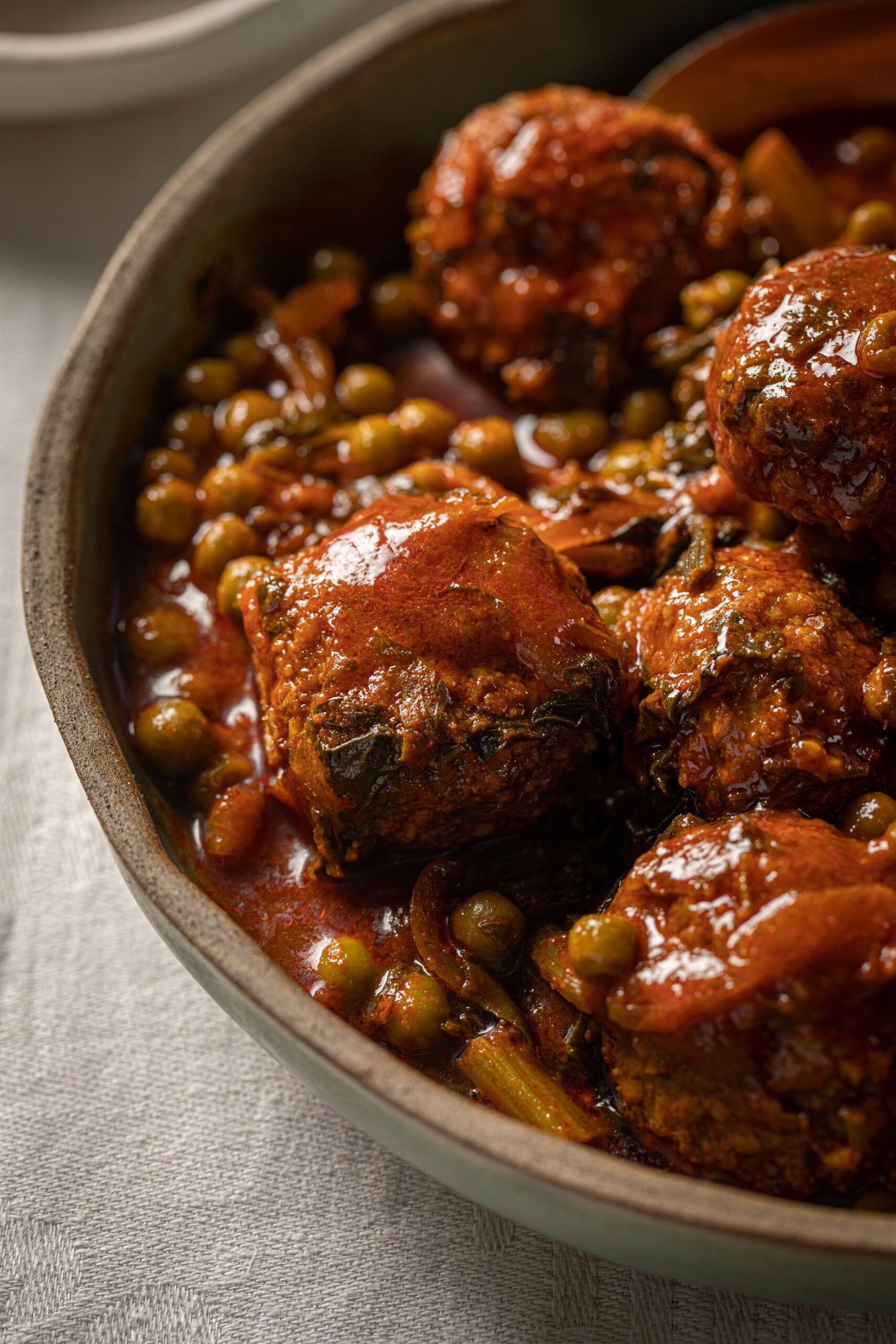 קציצות ביתיות רכות ואווריריות, ברוטב עשיר של עגבניות ואפונה. מושלם לילדים.