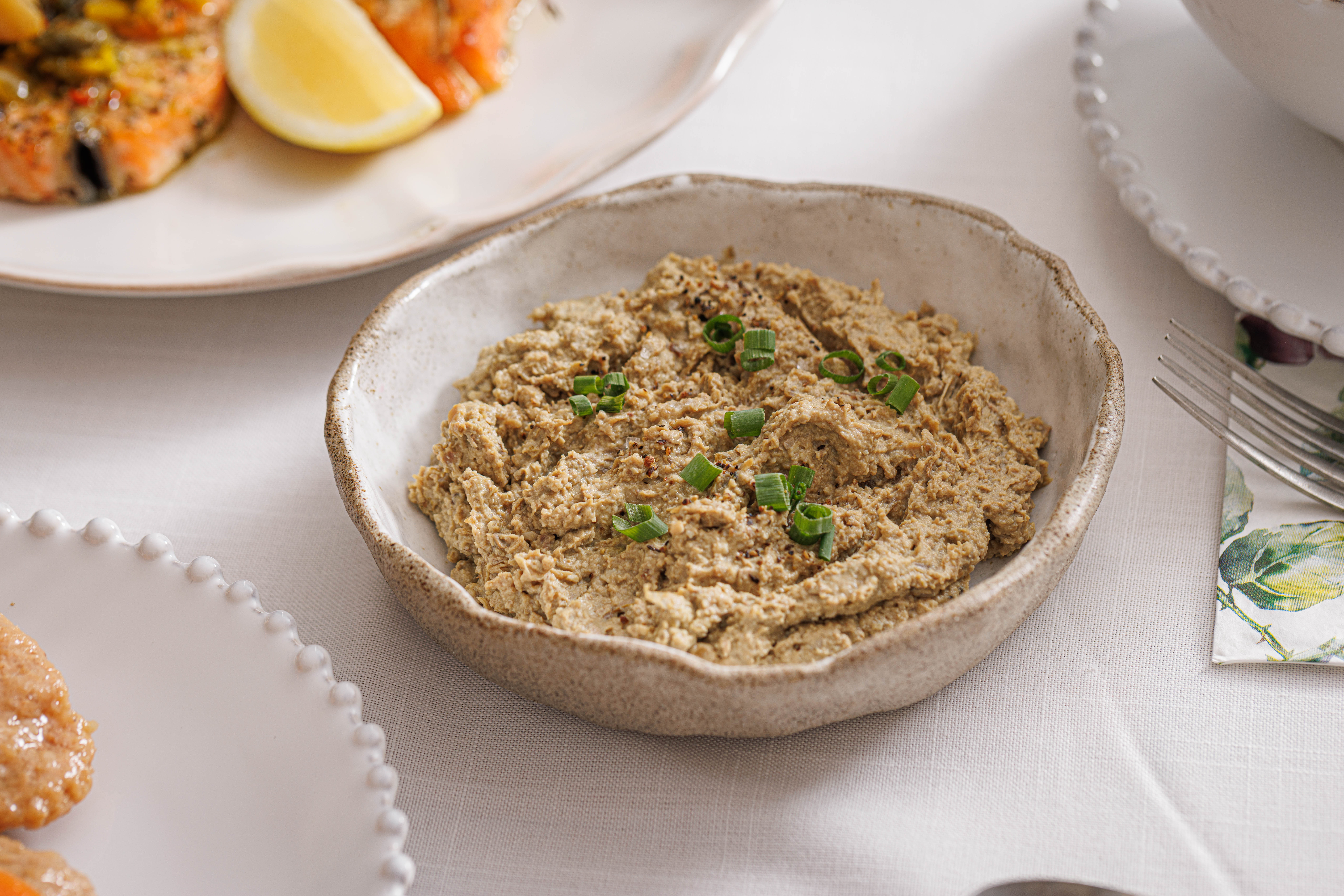 כבד עוף קצוץ עם ביצים, בצל ומעט סילאן.