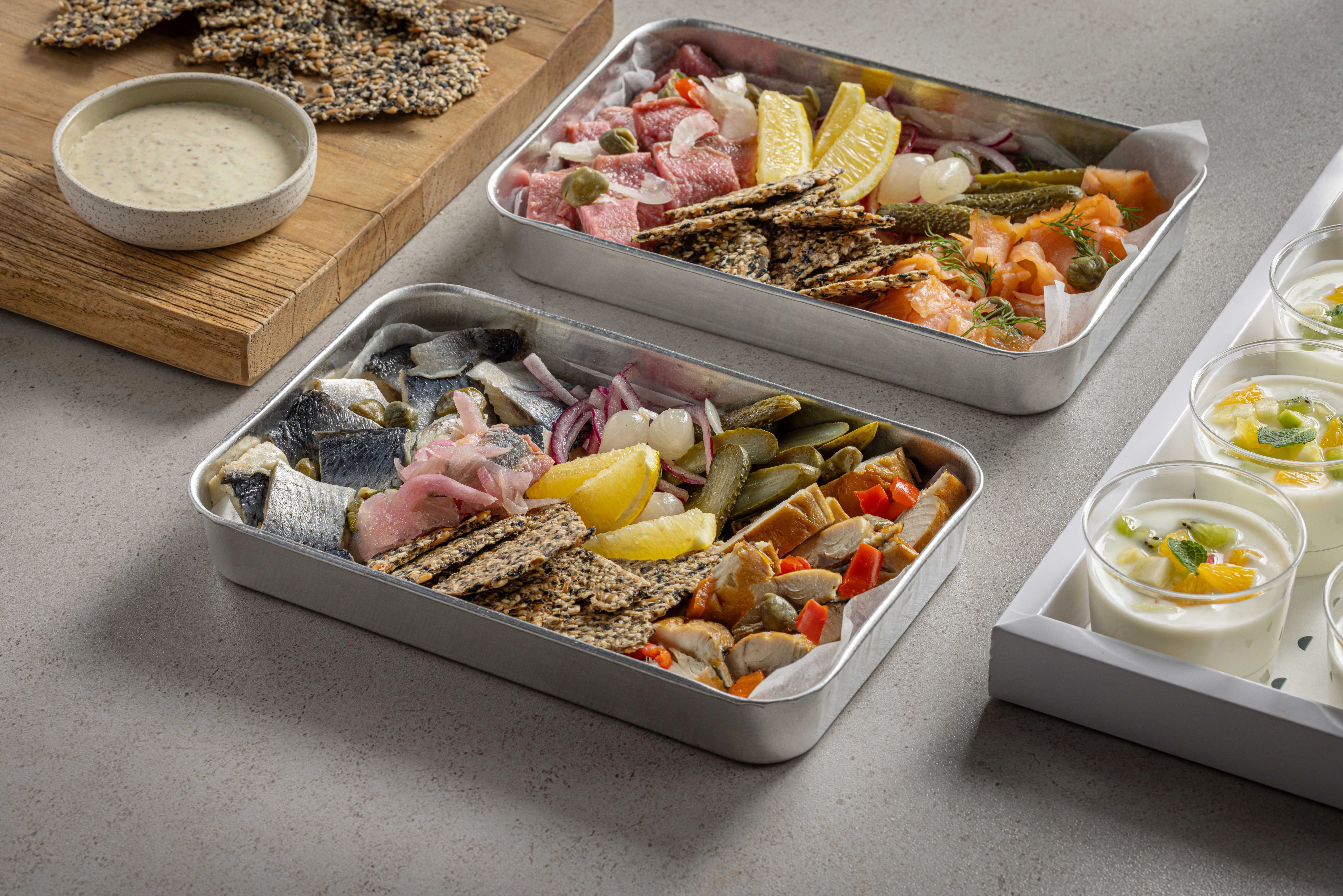 מומלחים או מעושנים? ככה או ככה מגש מיקס דגים כבושים בליווי של קרקרים טריים ופציחים בעבודת יד.