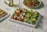 חצי מהמגש מלא בסלט קיסר והחצי השני בסלט קפרזה, כך שכולם בטוח מוצאים את מבוקשם.