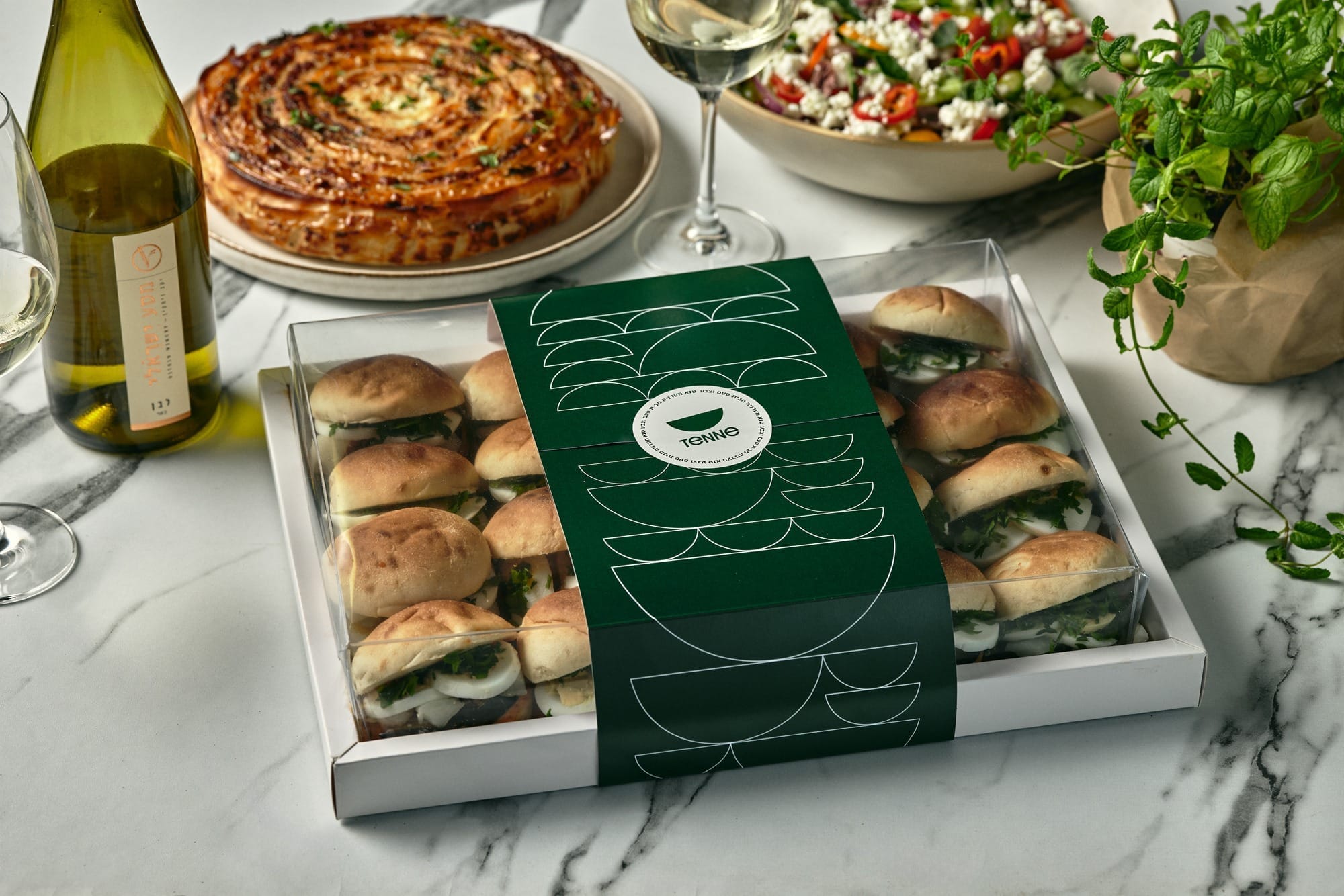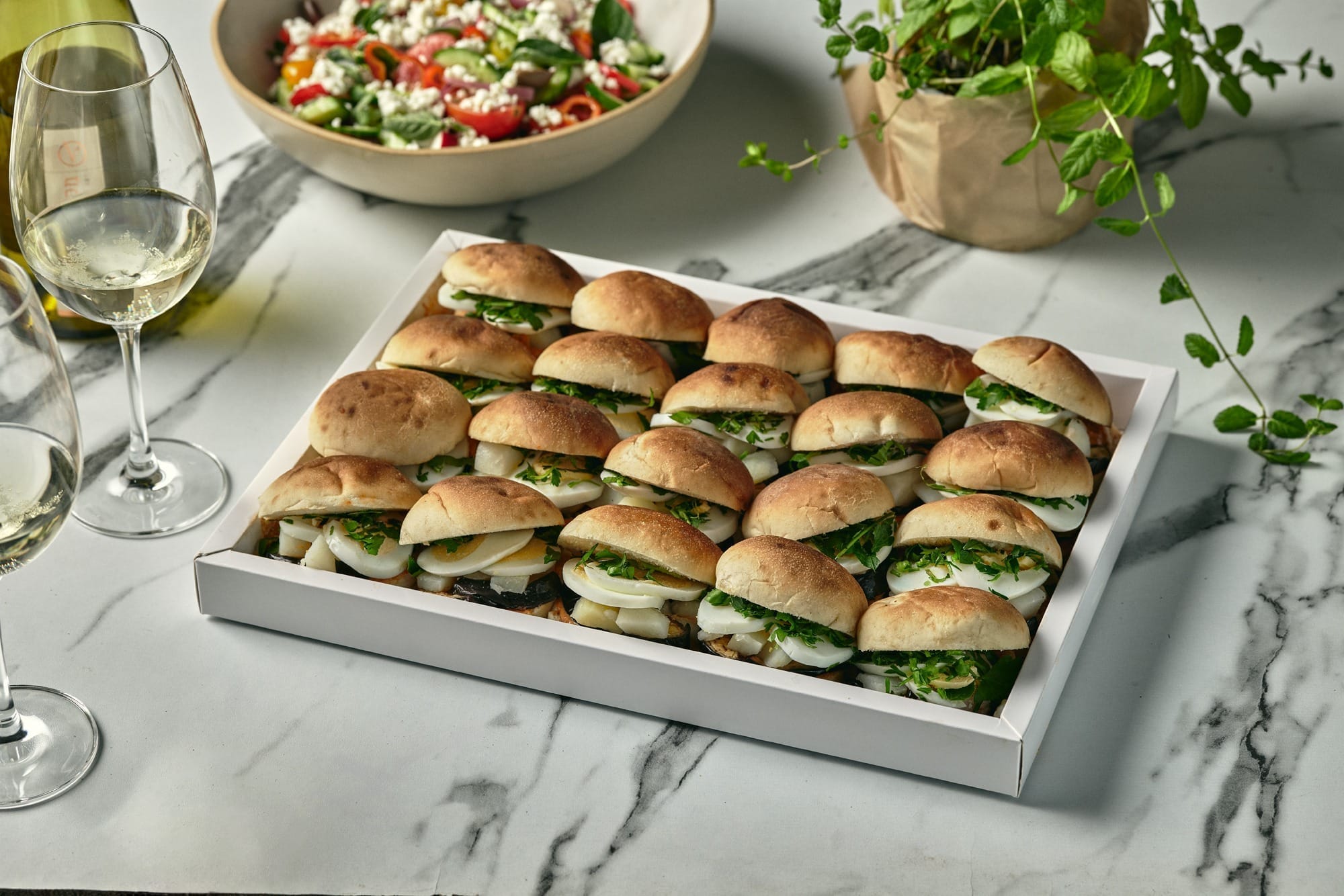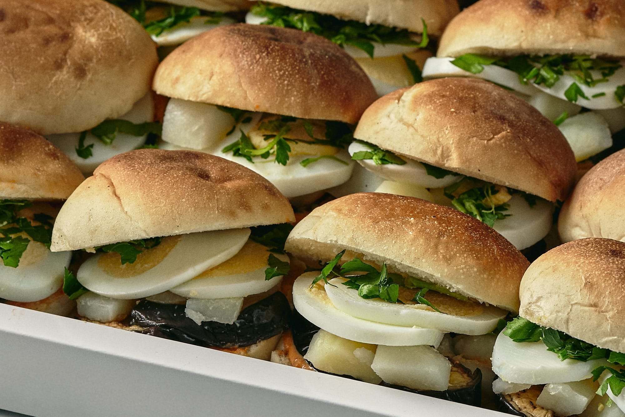 מיני פרנה סביח, חציל, ביצה קשה, טחינה, תפוח אדמה,